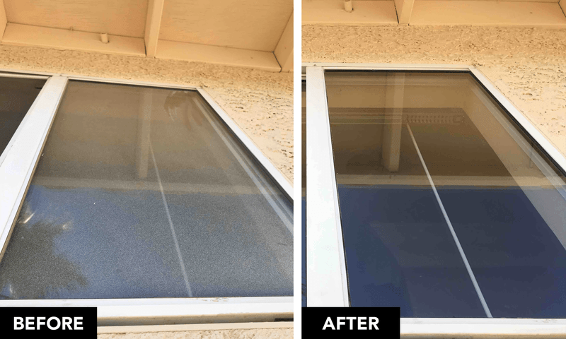 Yes! Screen cleaning is included FREE with every window cleaning service. We also clean window tracks and sills to remove built-up desert dust and debris. Our 5-step screen cleaning process includes removing, washing, drying, frame cleaning, and reinstalling your screens.